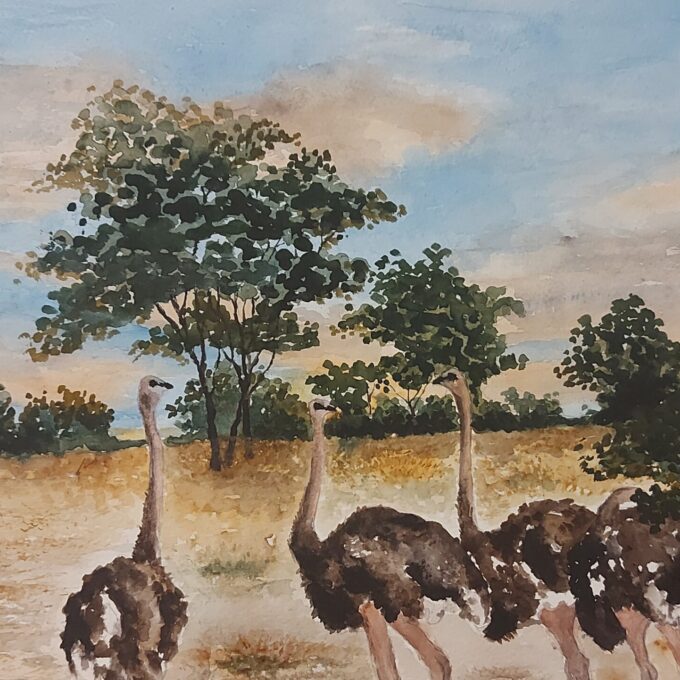 Fanele was born in Rhodesia- now Zimbabwe. He grew up in the countryside in Zimbabwe where he spent most of his time in the vast Savanna landscapes, herding his father’s cattle and interacting with wildlife and spectacular landscapes, such as the savanna plains, mountains, hanging Castle Kopjes, iDwalas, rivers e.t.c. Most of Fanele’s artworks are cinematic depictions of real-life encounters and they tell a story of those encounters. His paintings not only carry the soul of sceneries, wildlife or peoples, but they invite you to feel, part of the story. He uses watercolour media with a poetic licence on his technique. The collection of wooden and soft stone sculptures are unique and one of a kind.