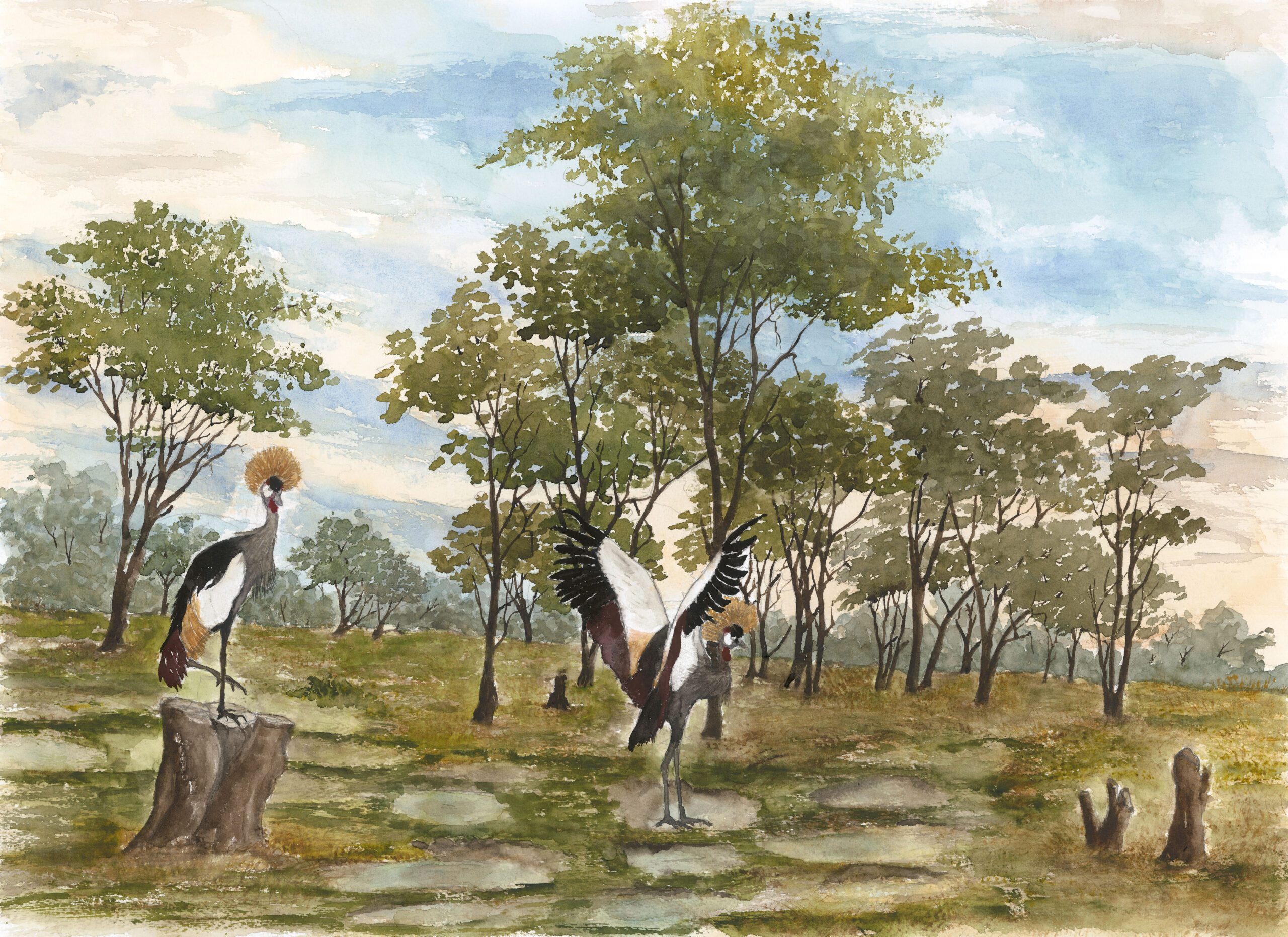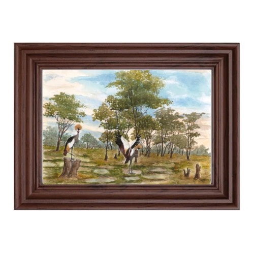 Limited Edition of One of Fanele’s amazing watercolour art works showcasing the amazing crowned cranes. The crowned cranes are listed as endangered on the IUCN Red List and protected by law in South Africa, Zimbabwe, Uganda and Kenyas, but the most fascinating law of protecting these magnificent birds was the story told by villagers, that the crowned cranes were sacred birds that should not be touched or harmed in any shape or form. It was told that if you accidentally or intentionally shot one with a sling shot and it died the other bird(they are always in pairs) would mourn for the other bird loudly until the person who shot it loses a relative as a result the artist grew up scared of coming near them