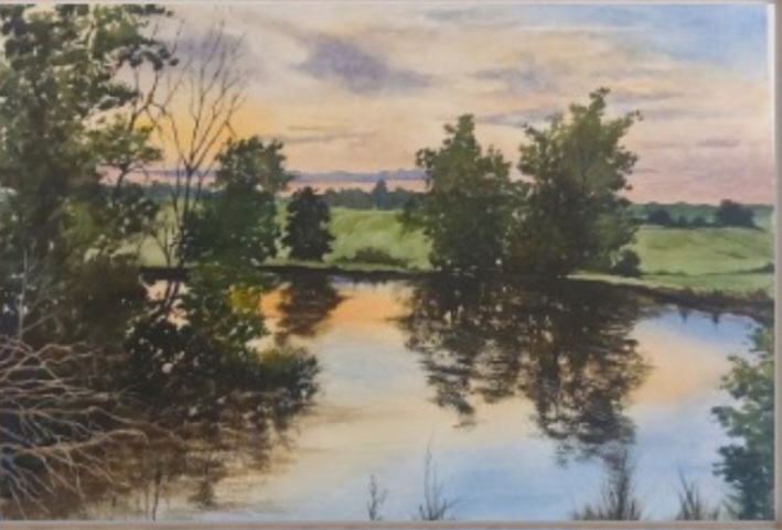 One of Fanele’s amazing Original Watercolour art works showcasing twilight in Bobbing Village- Kent. It amazing that during the first world war this area once had defence trenches. Bobbing was chosen as a key point in the defensive line because it controlled the road to Sheppey and the A2 road to London.